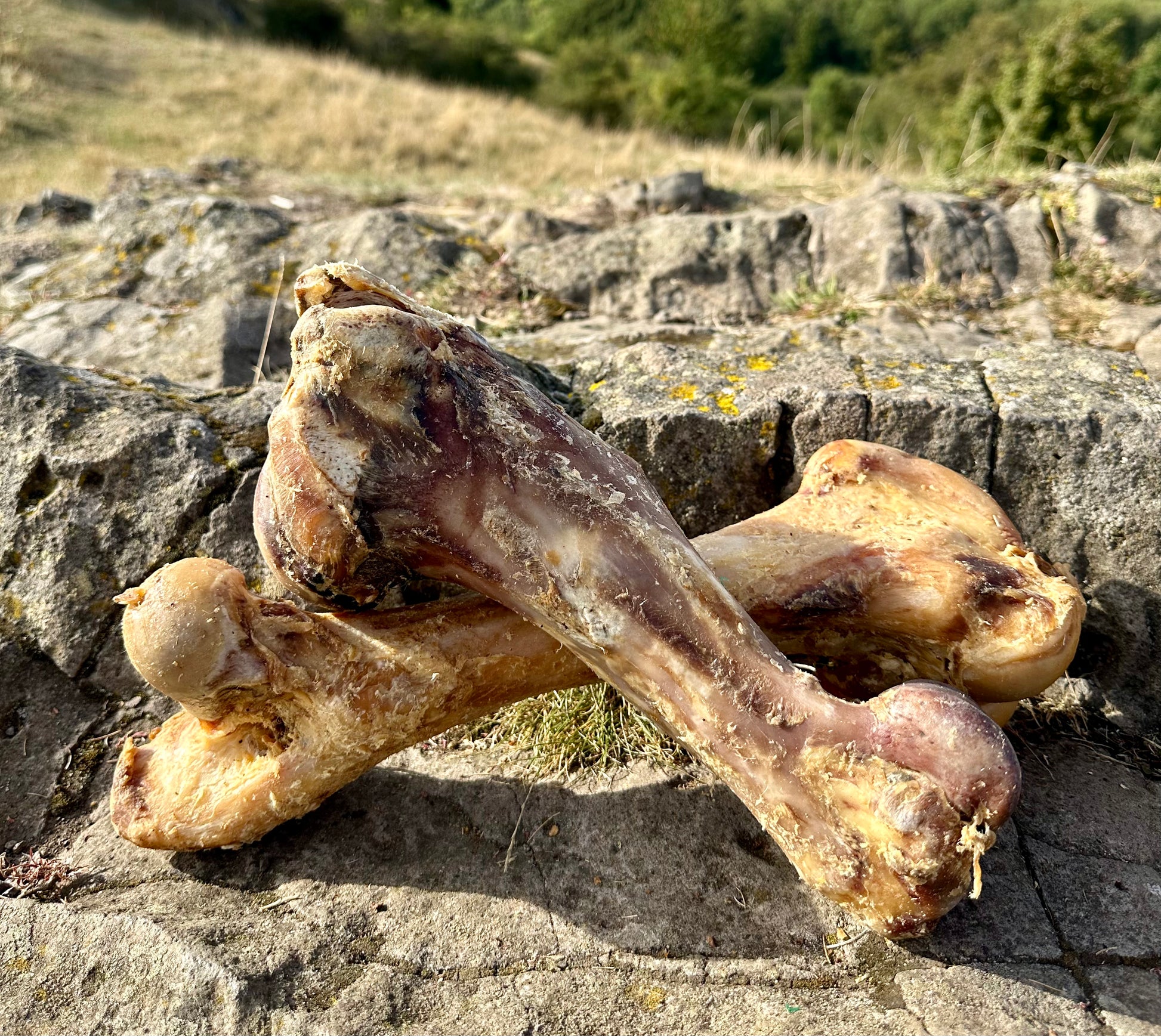 Der Rinderknochen ist ultra hart, dass heißt - dein Liebling hat einige Zeit was von seinem Leckerlie.